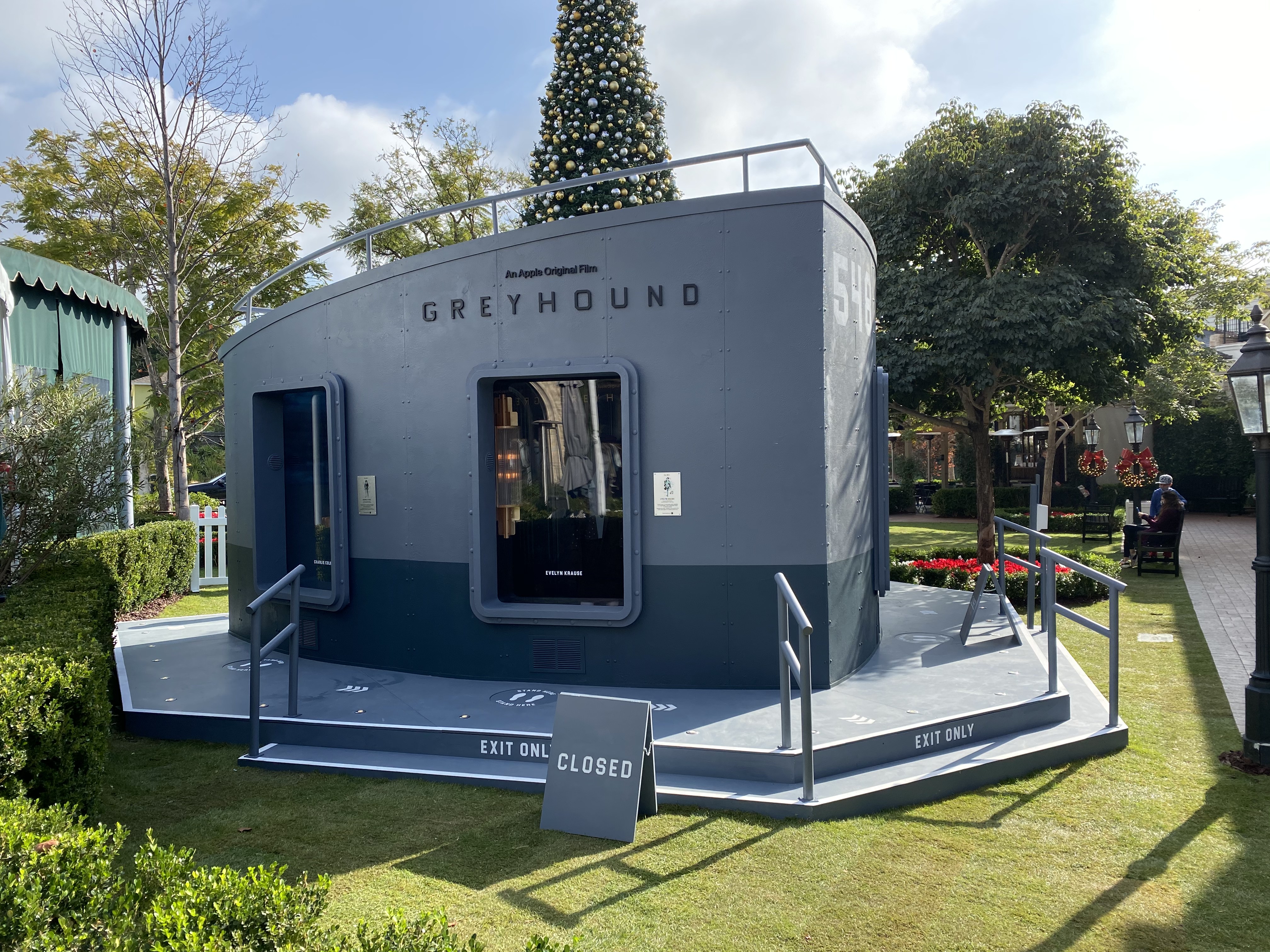 ︎ November-December 2020, Los Angeles With the world slowly coming back to life in a limited way a COVID safe activation was devised to allow guests to experience the majesty of the costume design of Tom Hank’s new motion picture “Greyhound.” Using preasure sensative sensors placed below the decking, the guest was able to individually trigger a light and sound show located in a vitrine with the actual costumes used in the film.